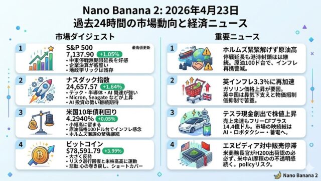 2026年4月22日 過去24時間の市場動向と経済ニュース