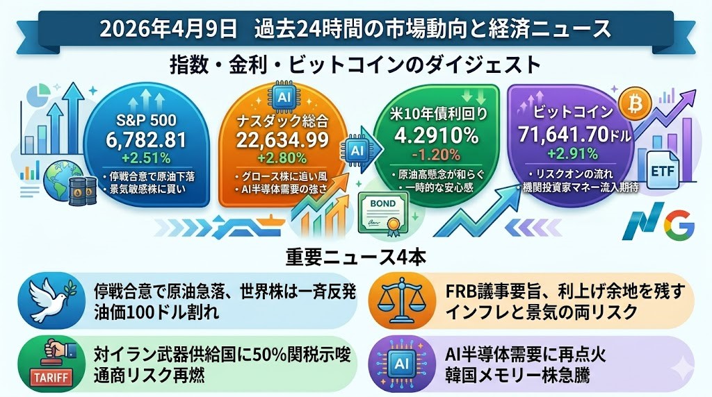 2026年4月9日 過去24時間の市場動向と経済ニュース