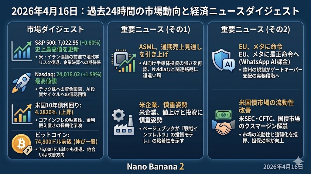 2026年4月16日 過去24時間の市場動向と経済ニュース