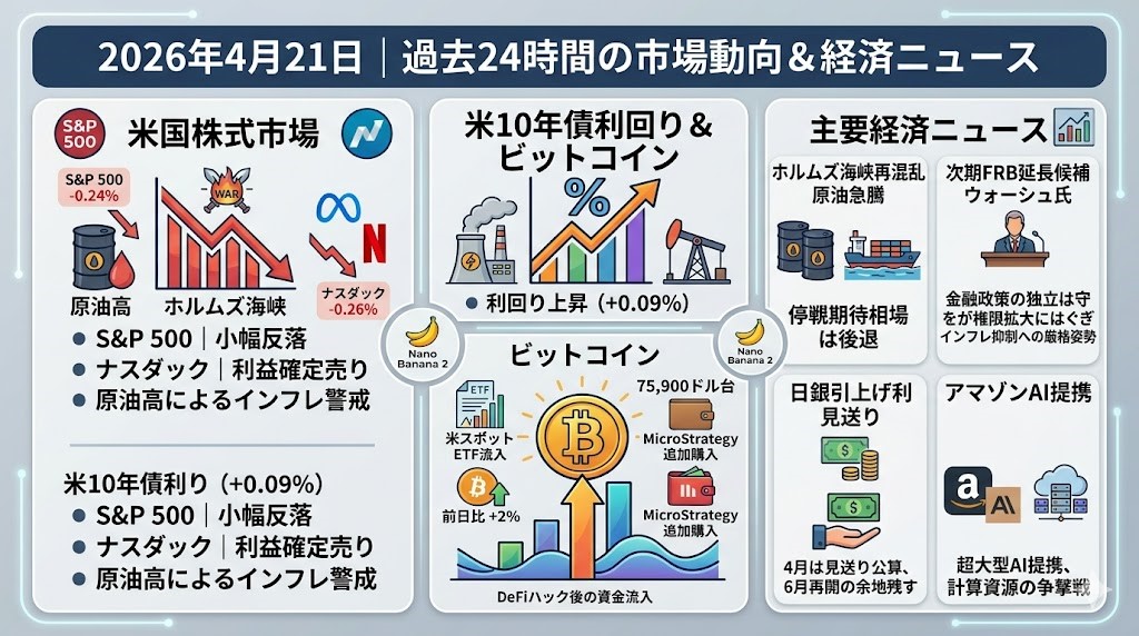 2026年4月21日 過去24時間の市場動向と経済ニュース